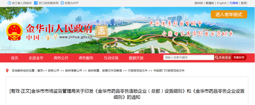 日前,浙江金华市印发《金华市药品零售连锁企业(总部)设置细则》和《金华市药品零售企业设置细则》,并于9月1日起正式实施。政策取消了“城区”和“农村”的区别,并将开办经营场所面积分别进行优化。立足发展集约化医药产业的长远考虑,进一步调整零售连锁总部开办要求。