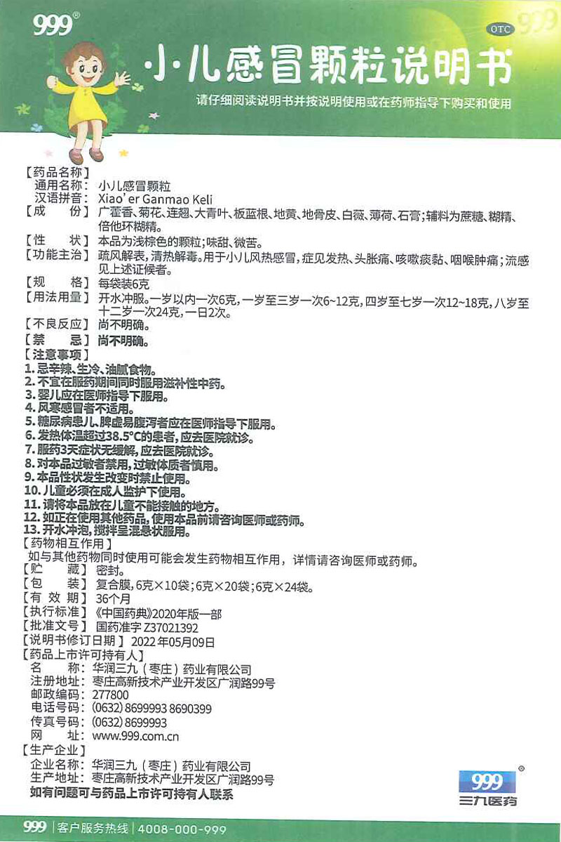 名称:小儿感冒颗粒产品名称 :小儿感冒颗粒生产