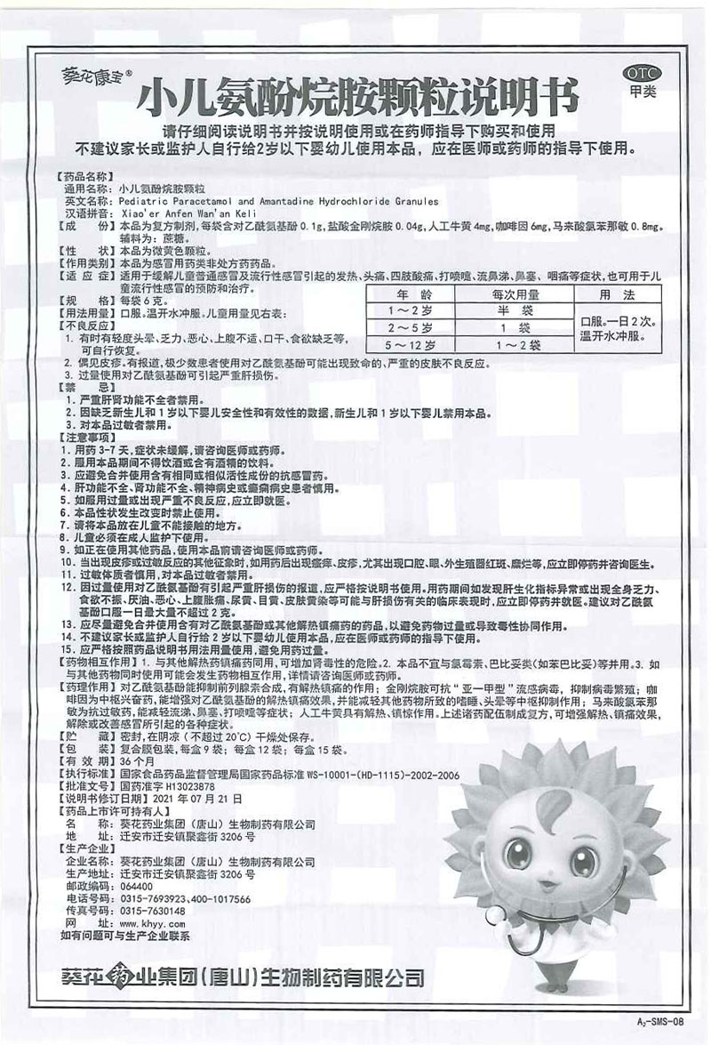 型号: 葵花康宝小儿氨酚烷胺颗粒