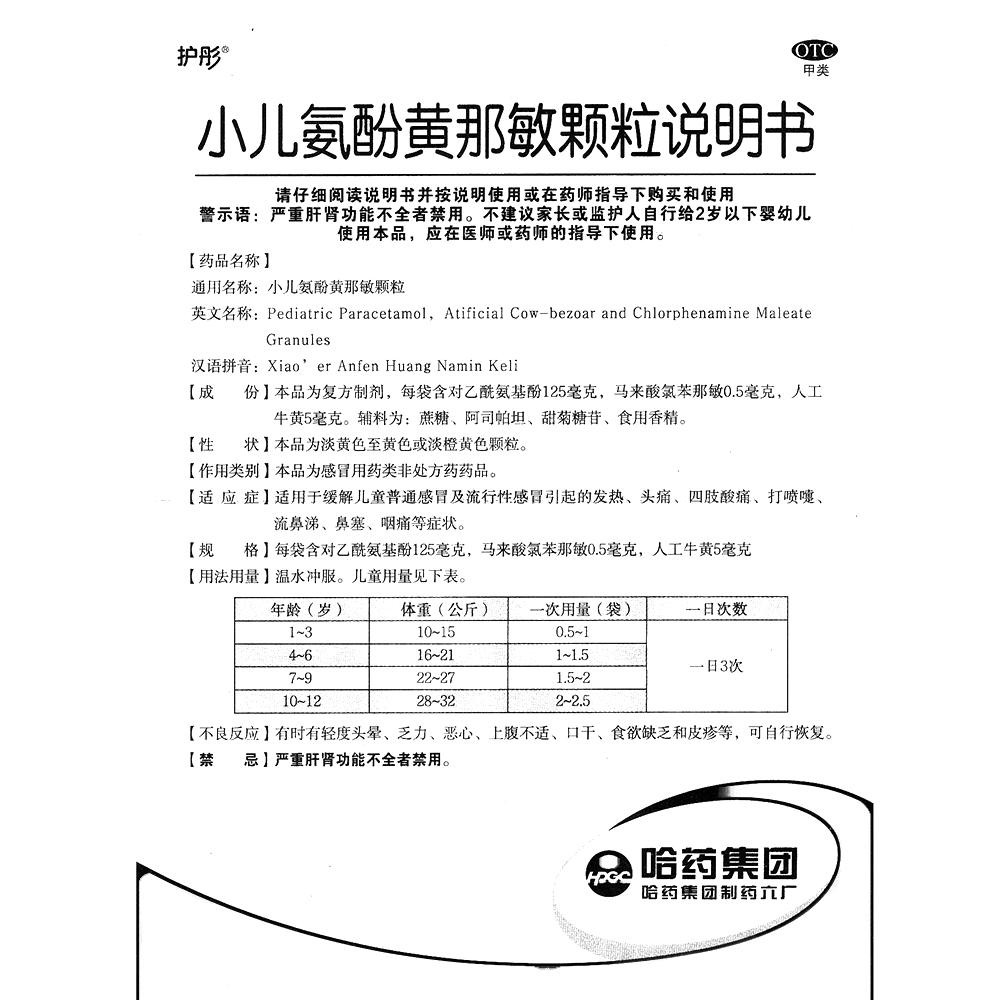 小儿氨酚黄那敏颗粒(护彤)